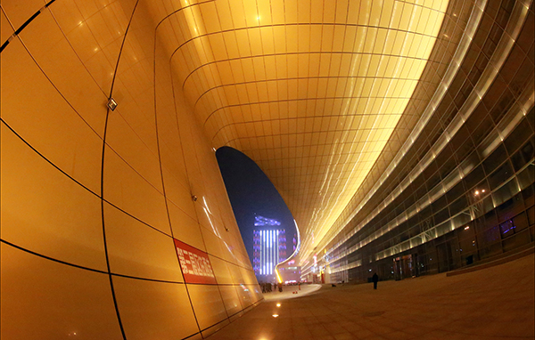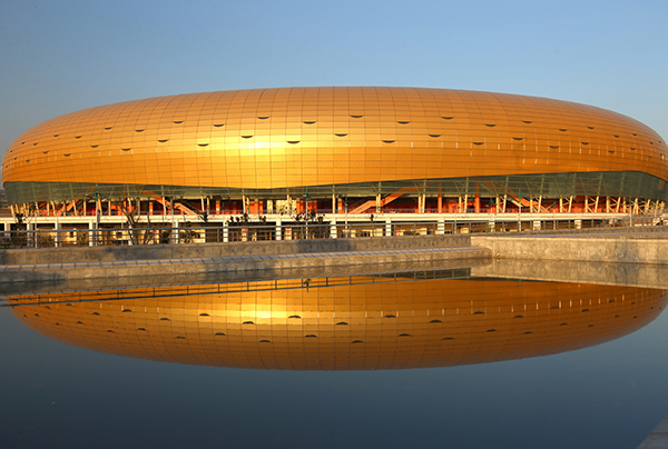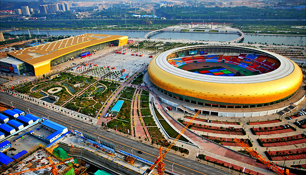 三門峽國(guó)際文博城由會(huì)展中心、科技中心、體育中心、傳媒中心、文化廣場(chǎng)五大功能建筑群構(gòu)成??傉嫉孛娣e37公頃,總建筑面積25萬平方米。會(huì)展中心和體育中心兩座建筑以金黃色為主色調(diào),造型優(yōu)雅、大氣磅礴,一呈元寶形,一似金盆狀;傳媒中心建筑高度190米,由三級(jí)體塊拔地而起,如雨后春筍般蓬勃向上。幾大建筑動(dòng)靜結(jié)合,交相輝映,充分彰顯了“金盆聚寶、節(jié)節(jié)高升”的設(shè)計(jì)理念,寓意三門峽市具有豐厚的人才資源、礦產(chǎn)資源和歷史文化資源,同時(shí)又象征三門峽經(jīng)濟(jì)社會(huì)正處于黃金機(jī)遇期和發(fā)展加速器。 文博城各種設(shè)備技術(shù)先進(jìn)、功能完備,融會(huì)議展覽、科技文化、體育健身、傳媒信息、休閑旅游等多種服務(wù)功能于一體,已成為三門峽的新生活動(dòng)力場(chǎng)、新都市會(huì)客廳、新文化集散地、新區(qū)域聚焦點(diǎn)。