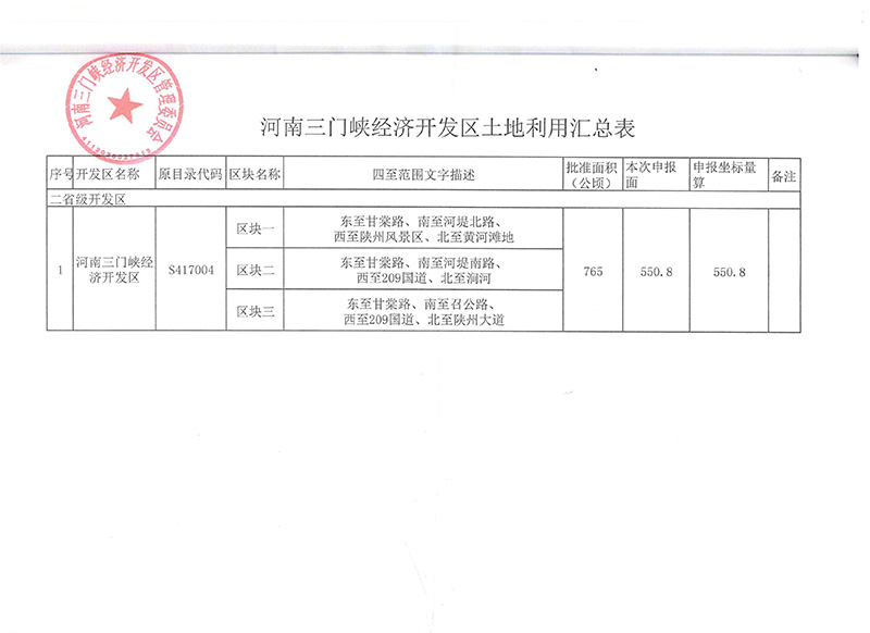 2018年,河南三門峽經(jīng)濟(jì)開發(fā)區(qū)土地變更。當(dāng)年2月26日經(jīng)中華人民共和國國家發(fā)展和改革委員會(huì)、中華人民共和國科學(xué)技術(shù)部、中華人民共和國國土資源部、中華人民共和國住房和城鄉(xiāng)建設(shè)部、中華人民共和國商務(wù)部、中華人民共和國海關(guān)總署2018年第4號(hào)公告了《中國開發(fā)區(qū)審核公告目錄》,其中河南三門峽經(jīng)濟(jì)開發(fā)區(qū)代碼S417004,核準(zhǔn)面積550.83公頃(見附件1),并確定了開發(fā)區(qū)的四至范圍為:東至甘棠路,西至陜州風(fēng)景區(qū),北至黃河灘地,南至召公路(見附件2)。根據(jù)最新四至范圍,陜州風(fēng)景區(qū)不在開發(fā)區(qū)管理范圍之內(nèi),且開發(fā)區(qū)沒有機(jī)構(gòu)設(shè)置審批權(quán)限,故您提案建議開發(fā)區(qū)成立古城管理委員會(huì)沒法辦理。