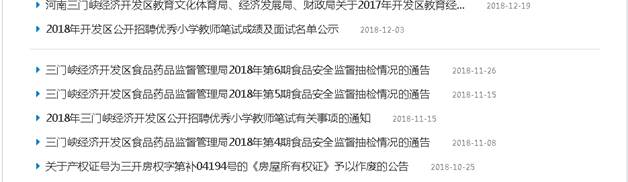 ?。ㄒ唬└鶕?jù)政府信息公開工作的需要,開發(fā)區(qū)管委會開設了“河南三門峽經(jīng)濟開發(fā)區(qū)”門戶網(wǎng)站,在網(wǎng)站首頁開設了新聞中心、政務公開、公眾服務、政民互動、政策解讀、公告公示、專題專欄等欄目,下設若干子欄目。截止2018年12月,門戶網(wǎng)站發(fā)布政府信息650余條,公告公示27條,回復網(wǎng)民留言6條,所有主動公開信息都及時上網(wǎng)公開。