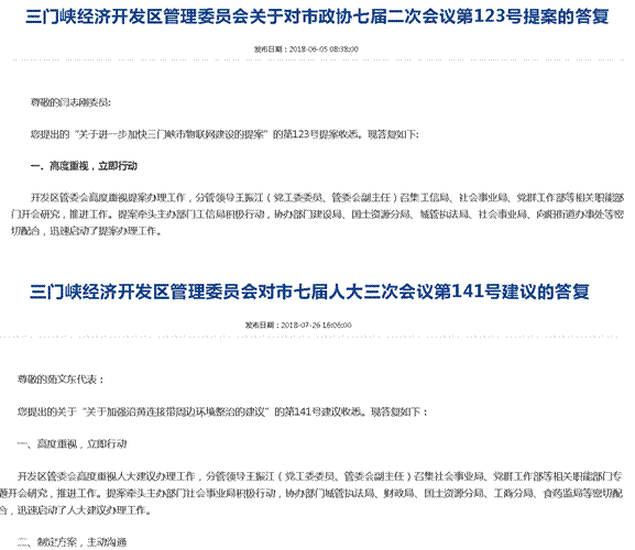 ?。ㄋ模└鶕?jù)市做好人大代表和政協(xié)提案辦理的通知要求,開發(fā)區(qū)收到建議提案后,根據(jù)內(nèi)容做出詳細分類,立即把辦理工作擺上重要議事日程,明確主承辦單位和責任人,對辦理程序、方法、時限等做出明確要求,2018年,收到人大代表建議和政協(xié)提案共3件,通過政府網(wǎng)站公開提案辦理結(jié)果3條。